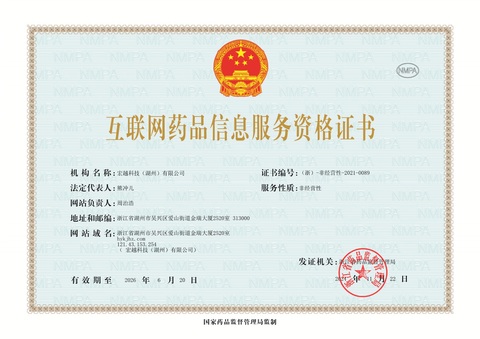 互聯(lián)網(wǎng)藥品信息服務(wù)資格證書(shū)(浙)-非經(jīng)營(yíng)性-2021-0089